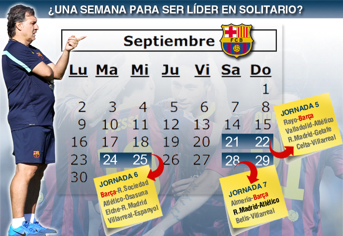 Vào cuối tuần này, Barça sẽ có chuyến làm khách trên sân của Rayo Vallecano. Sau đó, vào giữa tuần sau, Barça sẽ tiếp đón hiện tượng của mùa giải trước là Real Sociedad (đội hiện mới chỉ có 5 điểm sau 4 trận) trên sân nhà Camp Nou. Và vào cuối tuần sẽ là trận đấu trước Almeria trên sân khách.