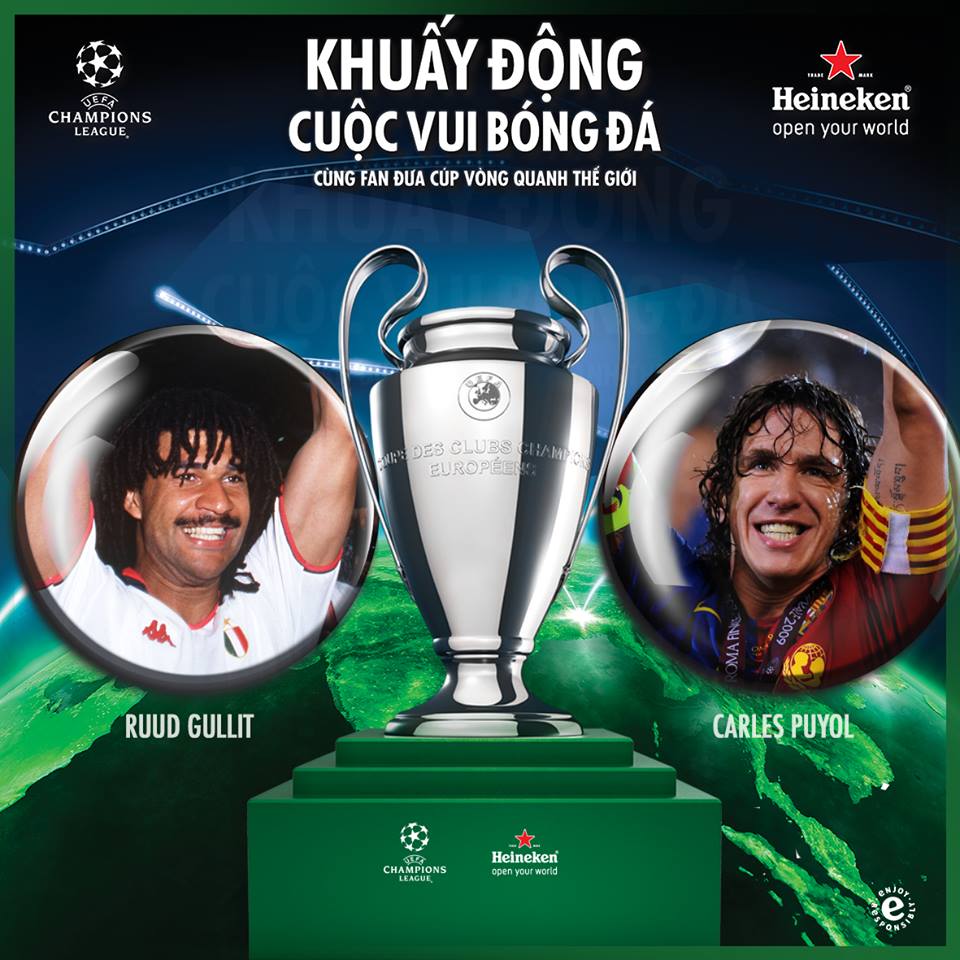 Đến hẹn lại lên, năm nay sự kiện thường niên "Khuấy động cuộc vui bóng đá - Cùng fan đưa cúp vòng quanh thế giới" của Heineken tiếp tục đưa chiếc cúp châu Âu danh giá đến Việt Nam. Và theo thông tin chính thức từ phía đơn vị tổ chức, người đội trưởng vĩ đại Carles Puyol của chúng ta cùng với cựu danh thủ Ruud Gullit người Hà Lan sẽ đồng hành cùng chiếc cúp UEFA Champions League trong hành trình vòng quanh thế giới, đồng nghĩa với việc Puyol sẽ đặt chân đến Việt Nam trong tháng Tư tới!!! ::flag: