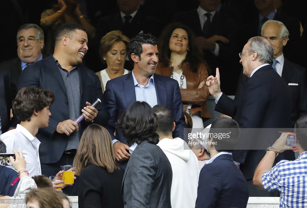 Bố già Perez và 2 thằng Judas hớn hở trên khán đài trước khi trận đấu bắt đầu.
