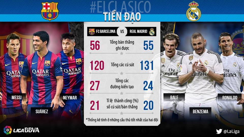 Trong thế đối sánh với sự tiến bộ qua từng ngày của đội bóng xứ Catalan, Real Madrid lại cho thấy sự dậm chân tại chỗ của mình. Đúng hơn, là một bước lùi đáng kể từ sau khi bị Valencia chấm dứt chuỗi 22 trận thắng liên tiếp. Nằm trong thế đối sánh với bộ ba MSN kể từ khi bước sang năm mới 2015, những Bale, Benzema hay Cristiano tỏ ra kém cạnh hơn hẳn không chỉ ở hiệu suất làm bàn mà còn qua những pha phối hợp thiếu ăn ý, thậm chí có phần hục hặc nhau khi người này lấy đi cơ hội của kẻ kia. Vấn đề của đội bóng áo trắng còn lộ rõ qua trận thua vỡ mặt 4 bàn không gỡ trước Atlético hay mới đây là để thua Schalke 04 ngay tại sân nhà tại cúp châu Âu. Giờ đây, Modric đã trở lại sau chấn thương dài ngày, Bale giải hạn thành công với cú đúp trước Levante, C.Ronaldo đang khát khao ghi bàn hơn bao giờ hết, liệu Ancelotti có kịp chỉnh đốn lại đội ngũ trước khi lên đường hành quân đến Camp Nou? Hẳn rồi, bởi đây là El Clásico và còn bởi trận đấu vòng 28 này sẽ là cơ hội để người Madrid san lấp cách biệt 1 điểm mong manh hòng đoạt lại ngôi đầu Liga từ tay đại kình địch.