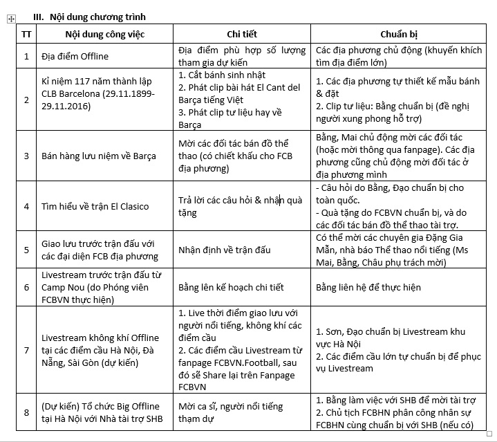 Đề nghị mọi người có ý kiến đóng góp chỉnh sửa/bổ sung vào bản Kế hoạch để buổi Offline được thành công nhất.