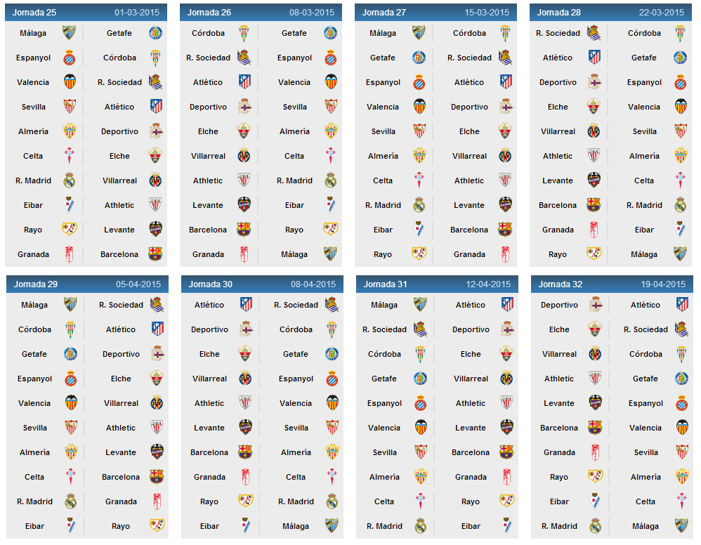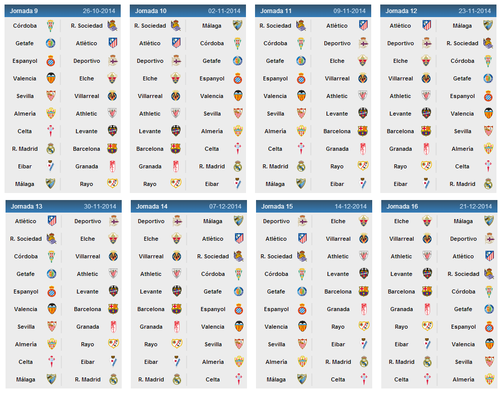 - Real Madrid sẽ chơi trận ở vòng 16 vào ngày 4 tháng 2 (giữa vòng 21 và 22) do tham gia giải vô địch thế giới các CLB.