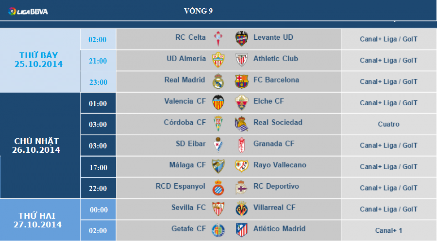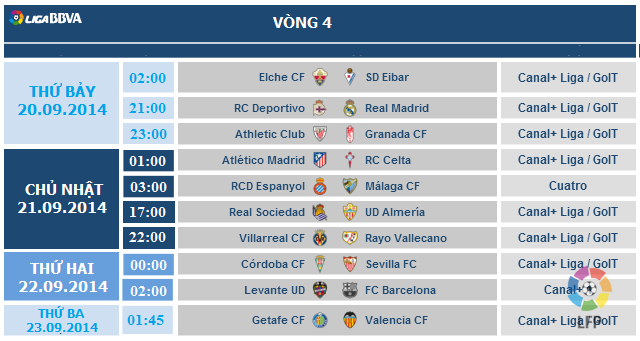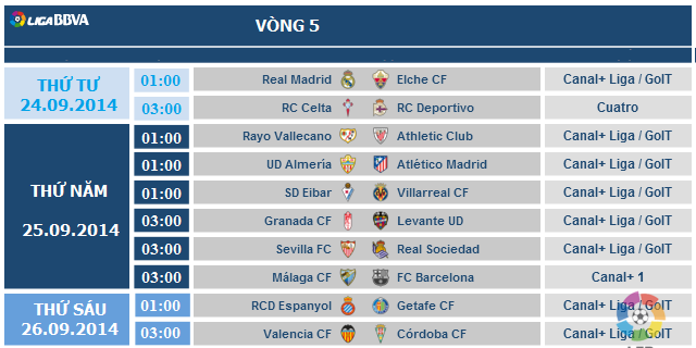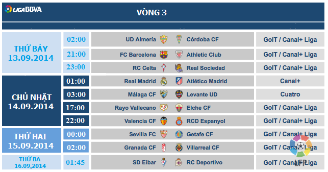 - Lượt trận đầu tiên diễn ra ngày 24/08/2014.