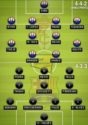 Danh sách 19 cầu thủ được đăng kí trong trận đấu này: Valdés, Pinto, Dani Alves, Piqué, Fàbregas, Puyol, Iniesta, Alexis, Messi, Thiago, Mascherano, Bartra, Sergio, Pedro, Jordi Alba, Montoya, Adriano, Song và Tello.