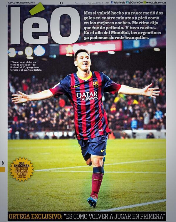 Bài viết tâm điểm của nhật báo SPORT số ra hôm nay nói về việc chủ tịch Rosell trong năm 2014 sẽ tiến hành cải thiện hợp đồng của Leo Messi, biến anh thành cầu thủ được trả lương tốt nhất thế giới, như những gì ông từng tuyên bố vừa qua.