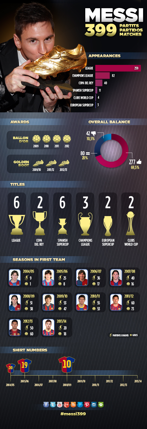“Tôi đến nay đã 7 lần liên tiếp có mặt ở top 3 QBV, với tôi như thế là quá nhiều rồi. Tôi không suy nghĩ về việc tuy mình còn trẻ (26 tuổi) nhưng đã lại 7 lần nằm trong top 3 QBV, tôi chỉ muốn tiếp tục duy trì phong độ và giành các danh hiệu với Barça và tuyển Argentina.”