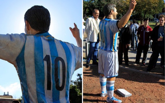 Ảnh: Cùng với hai cựu danh thủ Diego Maradona và Gabriel Batistuta, Lionel Messi vinh dự trở thành cầu thủ thứ 3 được tạc tượng. Bức tượng được đặt ngay tại quê hương Buenos Aires của chàng lùn. Những bức tượng này được hoàn tất để kỉ niệm 20 năm thành lập của kênh thể thao TyC Sports của Argentina.