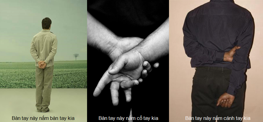 + Bàn tay này nắm cổ tay kia: Cử chỉ tay tiêu cực này cho thấy chủ nhân của nó rất có thể đang thất vọng, cố tự chủ, tự an ủi mình, tự kiểm soát bản thân.
