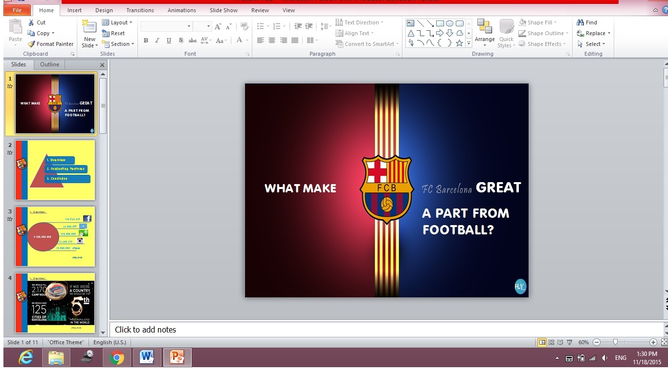 Cuối cùng, bài thuyết trình của mình có topic là " What make FC Barcelona great apart from FOOTBALL".