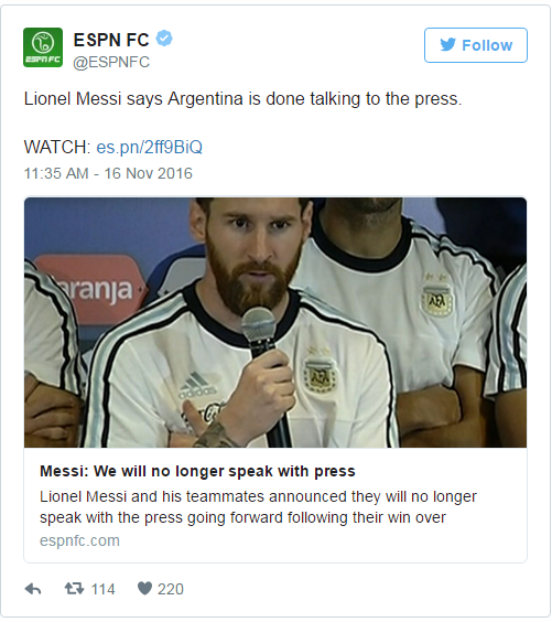 Messi tuyên bố đoạn tuyệt với truyền thông, dẫn cả đội rời phòng họp báo