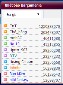 4/ Người chơi có thể kiểm tra tài khoản của mình bên dưới Avatar và xem thứ tự top 10 Đại Gia vào bất kì thời điểm nào của cuộc thi. Top đại gia nằm ở mục Nhật Báo Barçamania, nơi liệt kê các bài viết mới.