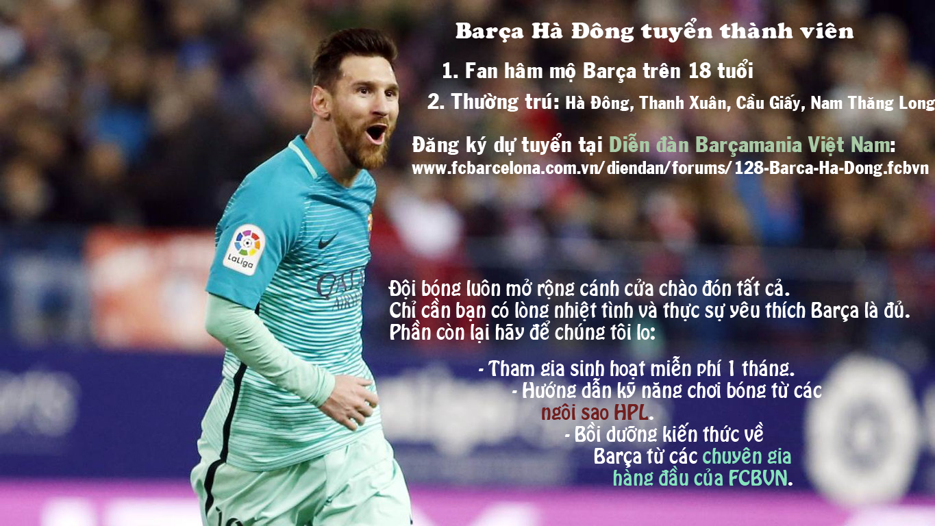 Đội bóng Barça Hà Đông hoan nghênh tất cả các anh em Culer ủng hộ và tham gia nhiệt tình trong thời gian tới!