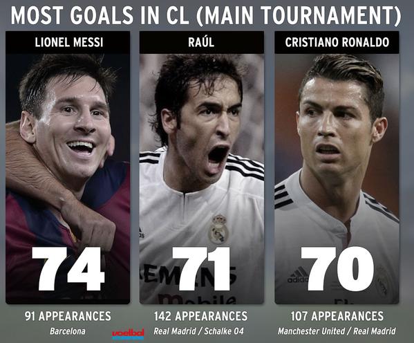 Messi còn đợi phá cái kỷ lục ghi bàn của Raul xét trên cả 3 cúp Châu Âu nữa(76 hay 77 gì đó mỗi nguồn 1 kiểu) nhưng chắc cũng chỉ trong mùa giải này thôi