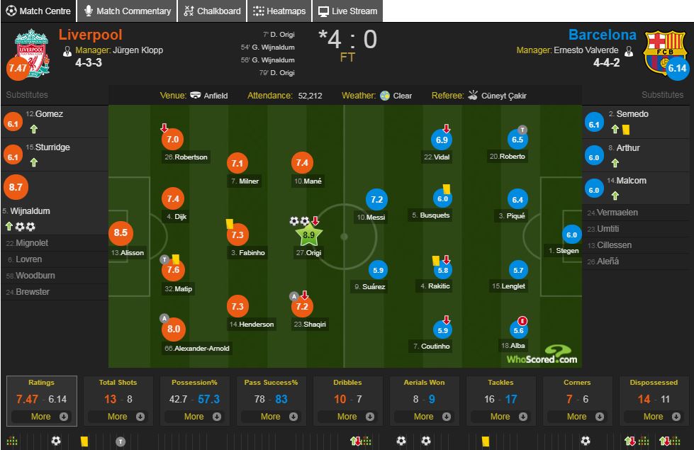 Đánh giá lại trận thua của ta vào năm ngoái với Liverpool. Nguồn: https://www.whoscored.com/Matches/1370008/Live/Europe-Champions-League-2018-2019-Liverpool-Barcelona