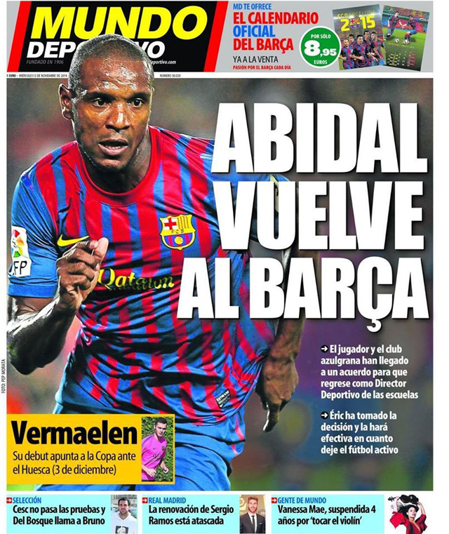 - Tờ Mundo Deportivo cho biết: Giữa Abidal và đội chủ sân Camp Nou chắc chắn đã có một thoả thuận, theo đó một khi cầu thủ người Pháp giã từ sự nghiệp quần đùi áo số và trở lại CLB xứ Catalunya, anh sẽ trở thành Giám đốc thể thao các trường đào tạo bóng đá FCB Escola của Barça; đồng thời trở thành đại sứ quảng bá cho hình ảnh CLB trên toàn thế giới.