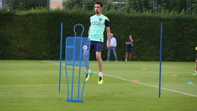 Do có đến 12 cầu thủ trở về tuyển làm nghĩa vụ quốc gia, nên buổi tập tại Ciutat Esportiva Joan Gamper chỉ bao gồm 9 cầu thủ đội một (Pinto, Montoya, Puyol, Dos Santos, Bartra, Tello, Oier, Cuenca và Adriano).