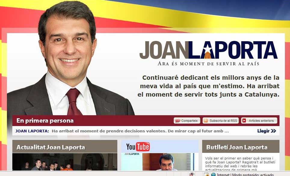 Chủ tịch sắp mãn nhiệm của FC Barcelona - Joan Laporta - một lần nữa khẳng định con đường sẽ đi trong thời gian tới. Mới đây ông đã có một buổi thuyết trình trước công chúng Barcelona, nói về những dự định của mình trong thời gian tới. Một trong những bước đi chính trị sắp tới của ông là việc ra mắt website: http://www.laporta2010.cat/.