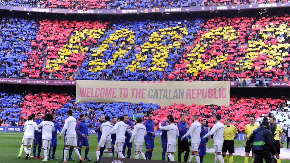 - Ngoài thảm Mosaic tuyệt đẹp ở đầu trận, một banner khổng lồ ghi rõ dòng chữ: "Welcome to the Catalan Republic" xuất hiện bên phía khán đài đối diện hầm ra. Banner này được gỡ xuống khi trận đấu bắt đầu.