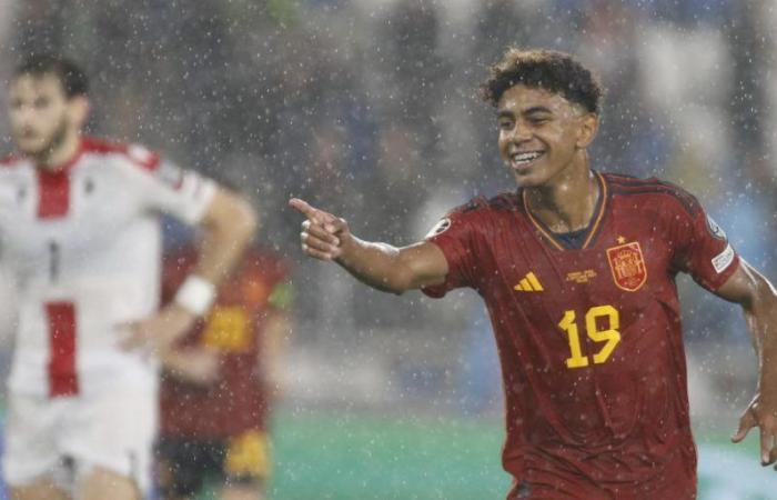 Tiền đạo sinh năm 2007 Lamine Yamal ghi bàn ấn định thắng lợi 7-1 cho Tây Ban Nha trước Georgia, tại lượt năm bảng A vòng loại Euro 2024.