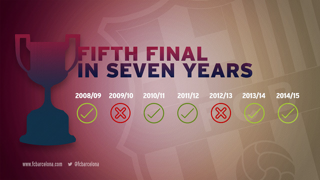 FC Barcelona năm lần vào đến chung kết trong bảy mùa giải gần nhất